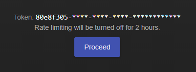 사람의 상호작용이 필요한 서드파티 도구를 개발한다면, 특정 토큰에 대해 레이트 리미팅을 끄는 특별한 플로우를 통합할 수 있습니다. 이를 위해 사용자에게 https://screeps.com/a/#!/account/auth-tokens/noratelimit?token=XXX 링크를 제공해야 하며, 사용자가 해당 페이지로 이동해야 합니다. 사용자가 페이지에서 "Proceed" 버튼을 클릭하면, 해당 토큰은 2시간 동안 레이트 리미팅 없이 사용할 수 있게 됩니다.