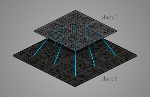 게임 월드는 서로 연결된 룸(room) 들로 구성됩니다. 룸은 50x50 셀 크기의 닫힌 공간입니다. 다른 룸으로 통하는 출구가 1~4개 있을 수 있습니다. 월드는 인터샤드 포털로 연결된 샤드(shard) 로 분리되어 있습니다. 샤드는 월드의 Z축이라고 생각할 수 있습니다.