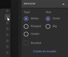 룸 사이드 패널의 "Invasion" 컨트롤을 사용하면 NPC 침략자를 수동으로 생성해 방어를 테스트할 수 있습니다.