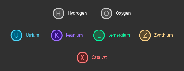 기본 미네랄은 그 자체로는 쓸모가 없습니다. 유용한 능력을 부여하려면 Lab 구조물에서 특수 조합식에 따라 결합해야 합니다.